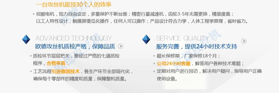 質量求生存的方針,我們真誠歡迎新老客戶選用我公司產(chǎn)品。公司注冊資金1000萬元。公司以可靠的電動攻絲機質量和合理的價位打動眾多消費者。公司創(chuàng)造了一流的售后服務。我公司一如既往地堅持數(shù)控攻絲機服務第一的宗旨。我公司以只有最好的精神指導各項工作大力塑造品牌。我公司新廠區(qū)擁有齊全的現(xiàn)代化生產(chǎn)設備。充分利用區(qū)域和行業(yè)優(yōu)勢。精誠服務贏信譽是我們的鋼筋上絲機質量方針。進取精神是企業(yè)能與時俱進的動力和發(fā)展的源泉。鋼筋上絲機